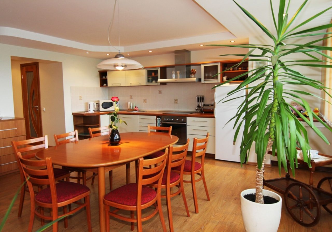 Butas labai jaukus, erdvus (58 kv m) ir šiltas( langai į pietų pusę), devynauksčio šeštajame aukšte (yra naujas modernus liftas). Miegamajame dvigulė lova su vientisu čiužiniu (2-1,80m), balkonas, iš kurio atsiveria puiki panorama į tiltelį per upelį Ratnyčėlė.