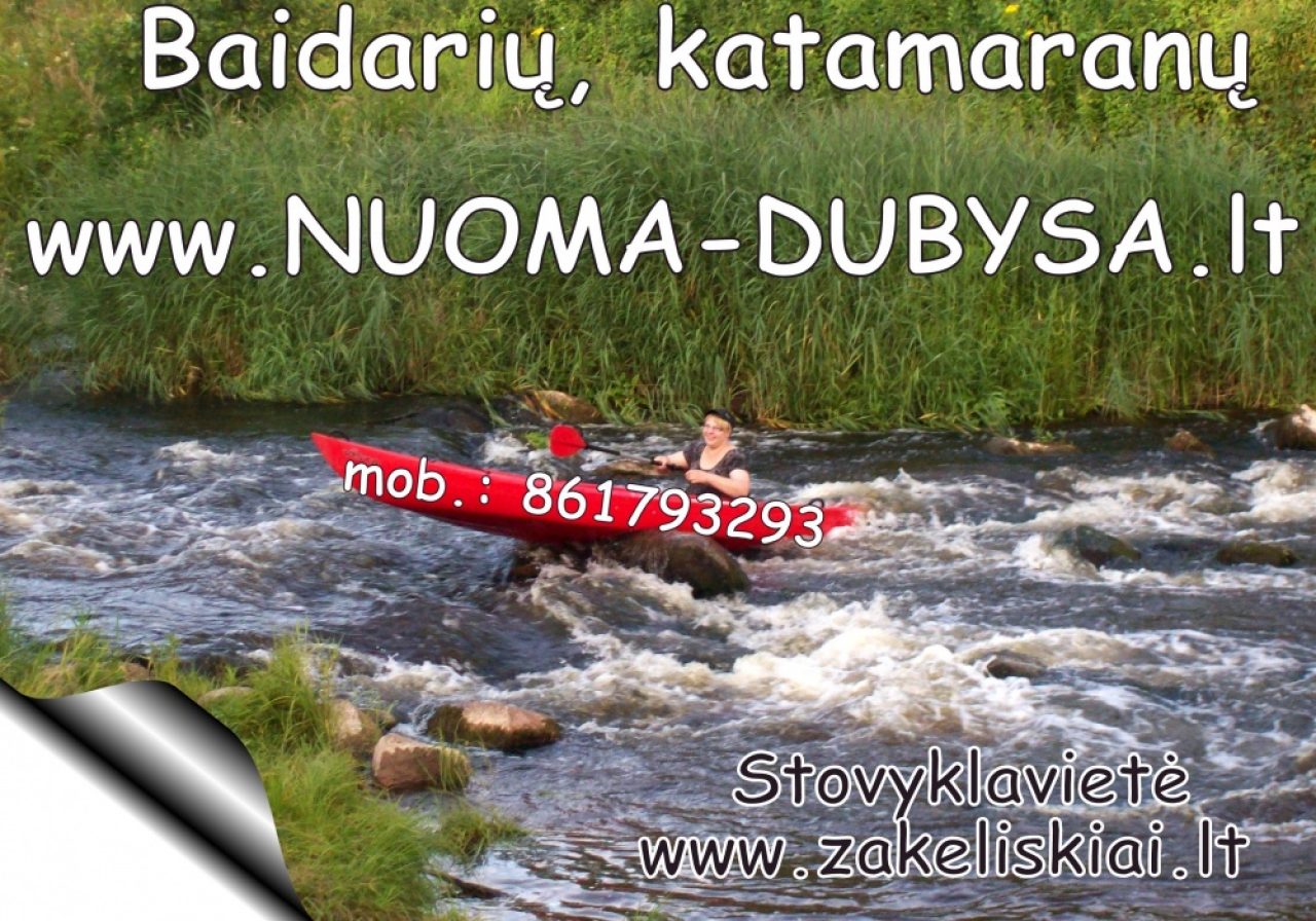 Nuvežame ir parvežame, konsultuojame, nemokamai teikiame gelbėjimosi liemenes, žemėlapius, maršrutų aprašymus. Nuomojame poilsiavietę prie Dubysos su pavėsinemis, lauko baldais, lauko pirtimi, šašykinėmis, laužavietemis, šulinio vanduo, elektra, WC, krepšinio, tinklinio aikštelės, nemokama automobilių statymo vieta.
