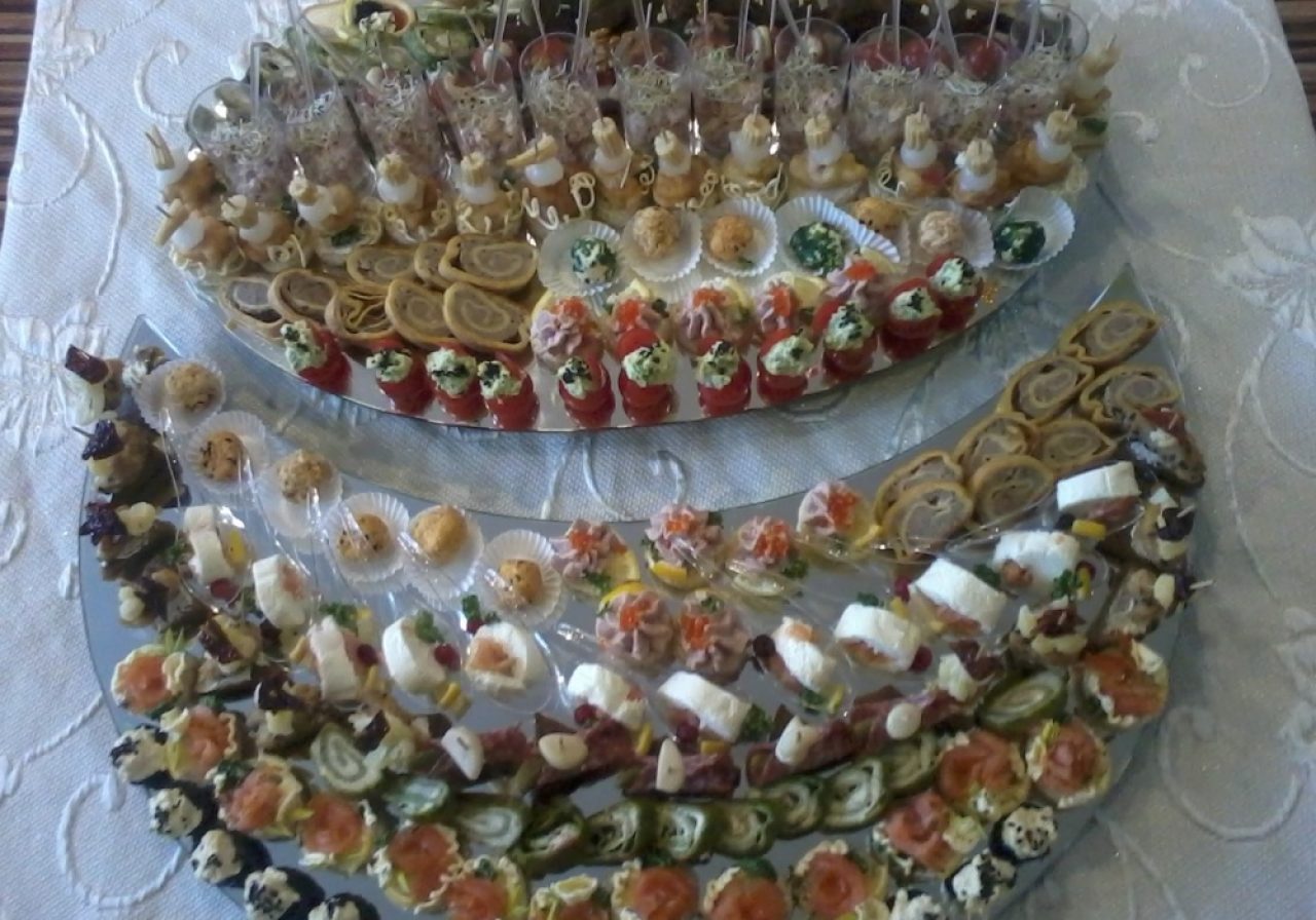 Profesionali maisto ruoša nuo mažo banketo, seminaro, įmonės vakarėlio iki iškilmingų vestuvių ir pristatymas į jūsų pasirinktą vietą bei galimybė ruošti šventę jūsų namuose: įvairių skonių naminiai vyniotiniai, mėsos – vegetariški suktinukai; įvairiais įdarais įdarytos vištos, įdarytos žuvys (lydeka, sterkas, lašiša, karpis) pagal jūsų išsirinktą skonį; įvairių dydžių ir skonių sumuštiniai (kanape, mini sumuštiniai). Kepame naminius tortus: Napoleoną, medutį, biskvitinius tortus su vaisiais ir jogurtiniu kremu,”maskarponės” kremu ir uogomis, įvairių dydžių naminius “skruzdėlynus”. Jei reikalinga, aprūpiname staltiesėmis (staltiesės furšetui su pasijoniu, staltieses banketams),veidrodžiais, metaliniais padėklais, indais…..
