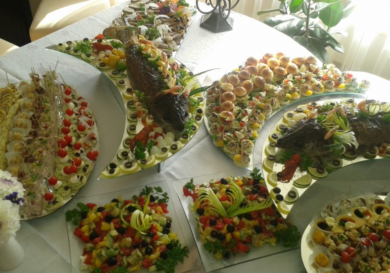 Profesionali maisto ruoša nuo mažo banketo, seminaro, įmonės vakarėlio iki iškilmingų vestuvių ir pristatymas į pasirinktą vietą bei galimybė ruošti šventę jūsų namuose: įvairių skonių naminiai vyniotiniai, mėsos, vegetariški suktinukai,įvairiais įdarais įdarytos vištos,įdarytos žuvys(lydeka, sterkas, lašiša, karpis) pagal jūsų išsirinktą skonį; įvairių skonių ir dydžių sumuštiniai (kanape – mini sumuštiniai). Kepame naminius tortus: napoleoną, medutį, biskvitinius tortus su vaisiai ir jogurtiniu bei šokoladiniu kremu, „maskarponės“ kremu ir uogomis, įvairių dydžių naminius skruzdėlynus. Jei reikalinga, aprūpiname staltiesėmis, indais, įrankiais, veidrodžiais maistui dėti