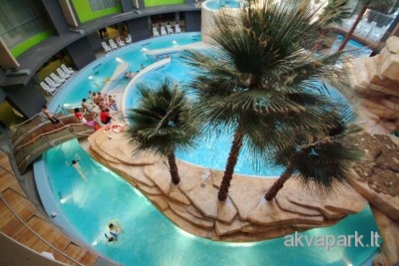 Vandens pramogos vandens parke – tai nusileidimo kalnelių bokštas su 6 skirtingais uždarais ir atvirais nusileidimo kalneliais ir po įspūdingu kupolu esančia baseinų zona. Bendras nusileidimo kalnelių ilgis yra daugiau nei 600 metrų, o ilgiausias kalnelis net 212 metrų.Įspūdingo dydžio baseinų zonoje Jūs plaukiosite 1800 kv. m. didžiajame baseine, iš kurio uolų ištekančios kaskados, kriokliai ir povandeninės srovės masažuos Jūsų kūną. Jeigu esate aktyvaus poilsio entuziastai, jūros bangų baseine galynėsitės su bangomis, o srauniojoje upėje plauksite pasroviui arba prieš srovę. Sušilsite ir atsigausite sausoje arba garinėje pirtyse bei poilsio erdvėje.