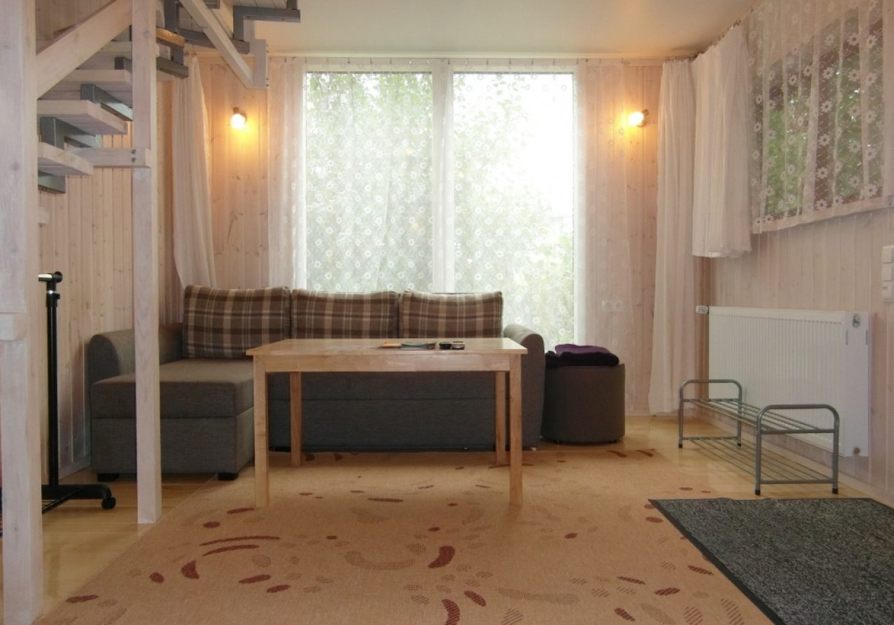 Tai naujai įrengtas jaukus medinis namelis skirtas patogiam šeimyniniam poilsiui. Namelis yra geografiniame miesto centre, ramiame privačių namų rajone, su atskiru įvažiavimu ir kiemeliu. Įrengta poilsio vieta, grilis.