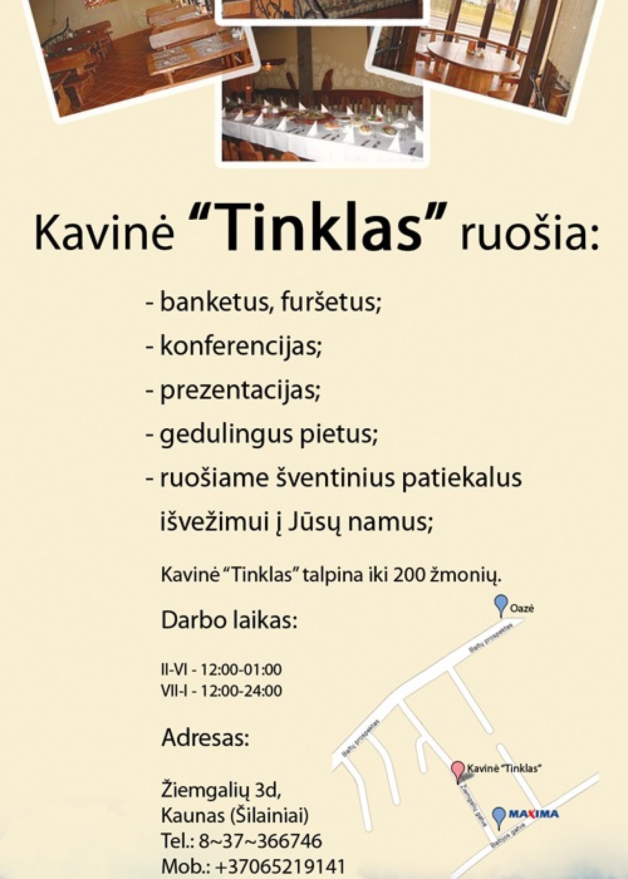Išskirtinio interjero kavinė. 3 salės, erdvės per 2 aukštus. Kavinė Kauno Šilainių mikrorajone populiari vestuvėms, jubiliejams, krikštynoms. Viso talpina iki 200 žmn. Mėgstami visos kavinės uždari užsakymai.