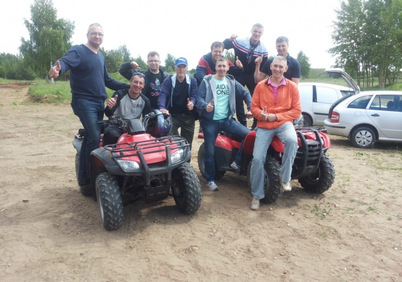 I kainą įskaičiuotas kuras, šalmai, draudimas nuo nelaimingų atsitikimų, keturračių transportavimas iki trasos.