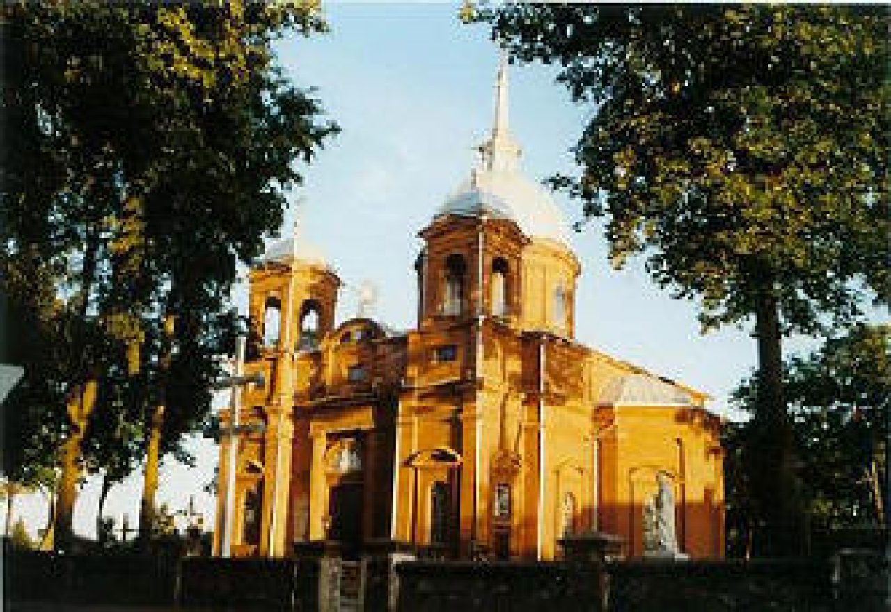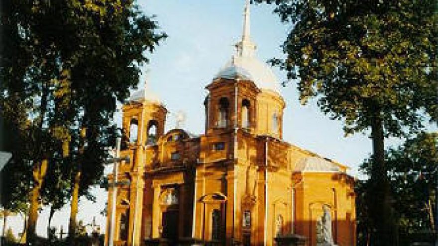 1882-1884 m. statyta mūrinė bažnyčia yra ypatinga ir reta tuo, kad jos kryžmą dengia didelis centrinis kupolas. Tai romantiško ir bizantiško stiliaus mišnys.  Greta bažnyčios, stovi aukšta mūrinė varpinė, pastatyta apie 1876 m. Ši varpinė turi rūsį. Tuojau už šventoriaus driekiasi kapinės. Seniausias paminklas siekia 1854 m.