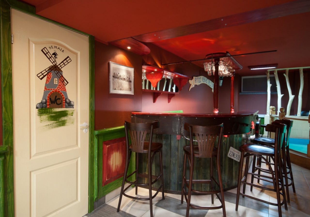 Siūlome puikiai praleisti laiką komplekse, kuriame įrengta pirtis, baseinas su povandeninėmis srovėmis, sukūrinė vonia, pobūvių salė, baras ir poilsio kambarys. Taip pat yra garso ir vaizdo aparatūra, stalo futbolo žaidimas, WC, dušai ir 4 miegamos vietos. Viso 150 kv.m. Vienu metu linksmintis gali iki 26 žmonių. Pirtis yra Pietario g.