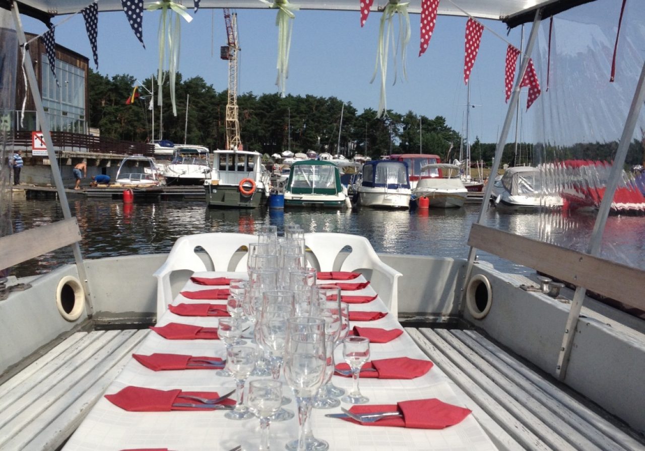 Jūsų patogumui restoranas „JachtKlubas“ laive gali paruošti užkandžius ir gėrimus. Plukdomi marių bangų galėsite mėgautis ne tik vaizdais, bet ir palepinti gomurį išskirtiniais užkandžiais.