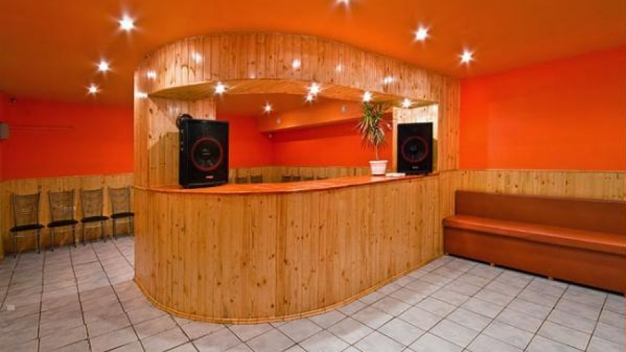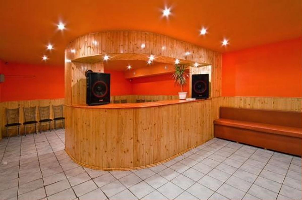 – sokiu aikstele, minkstasuoliai su staliukais, baras, sviesos muzikos spec. efektai, muzikos bei video iranga su karaoke, galimybe transliuoti video bei audio tiesiog is interneto;