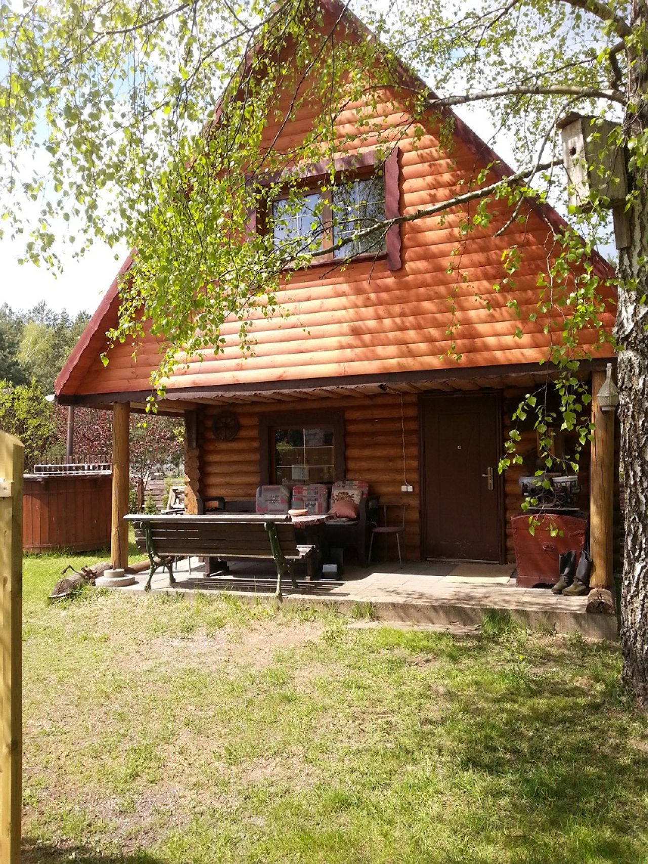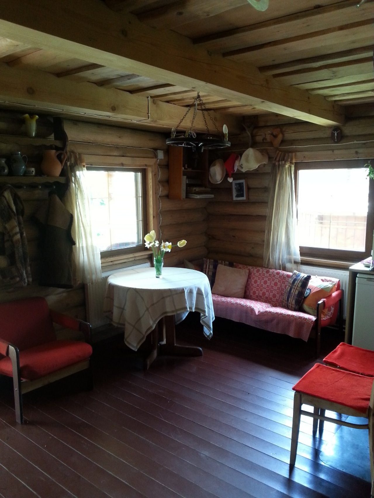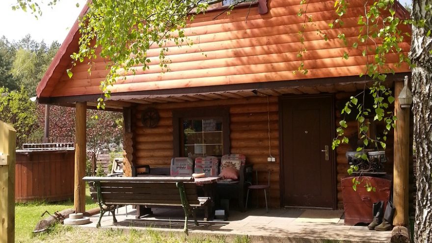 Siūlome Jums poilsiauti rąstiniame namelyje su visais patogumais. Namelis 50 kv.m., 4-7 vietų. Pirmame aukšte yra svetainė su TV bei virtuvė su visa įranga ir indais.