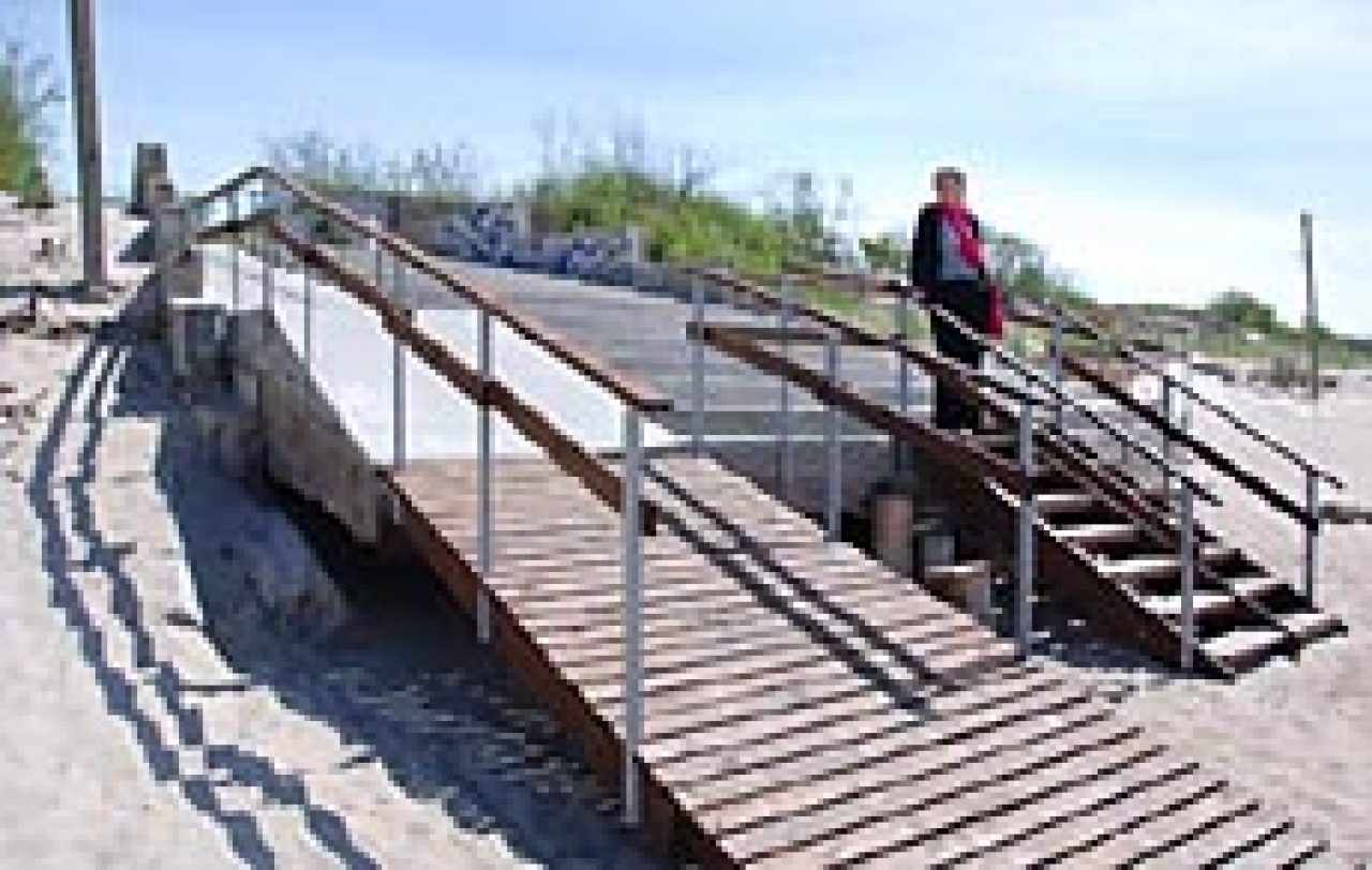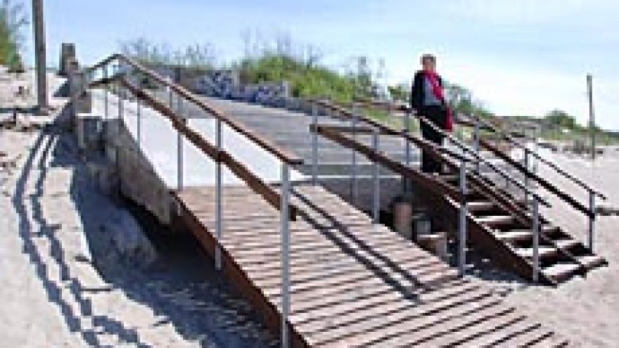 Specialiai neįgaliesiems pritaikytas paplūdimys prie Baltijos jūros.