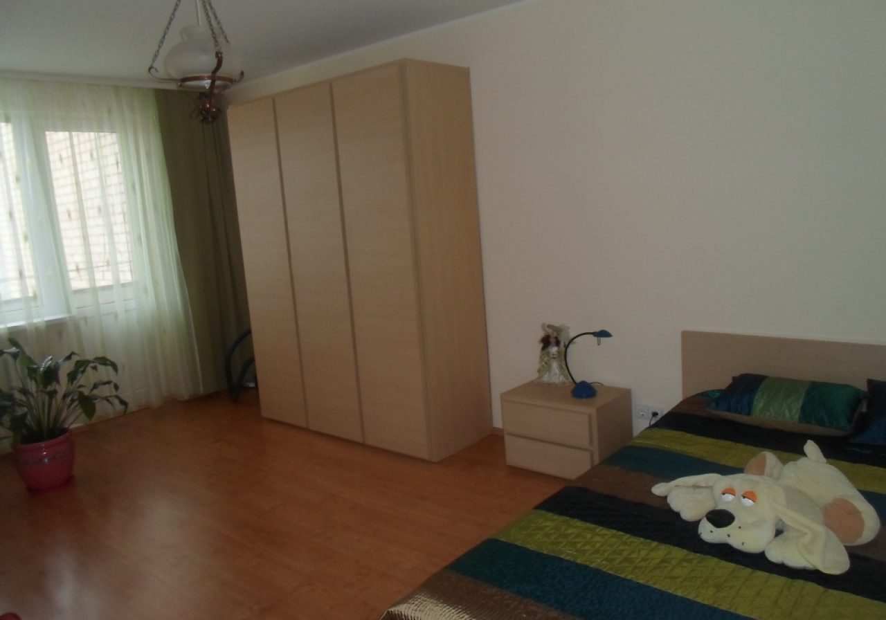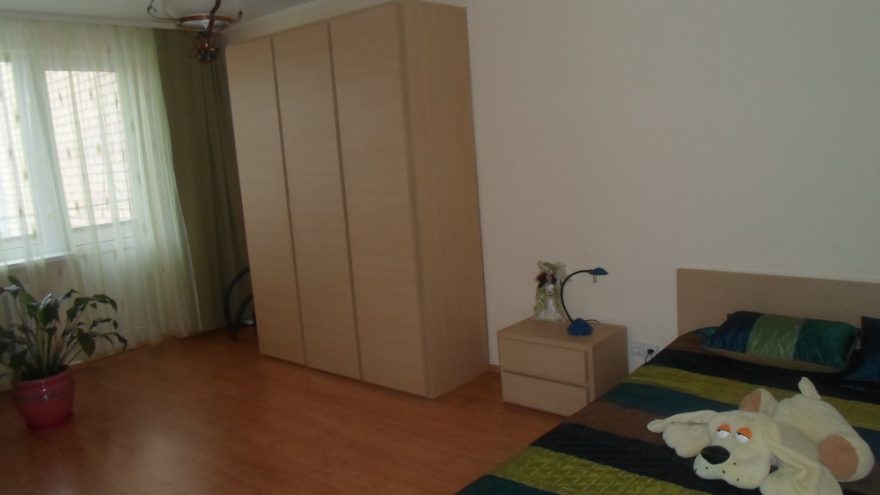 Išnuomojamas erdvus ir naujoviškas 3 kambarių butas (du miegamieji, svetainė sujungta su virtuve, prieškambaris) su baldais bei visa reikalinga buitine technika.