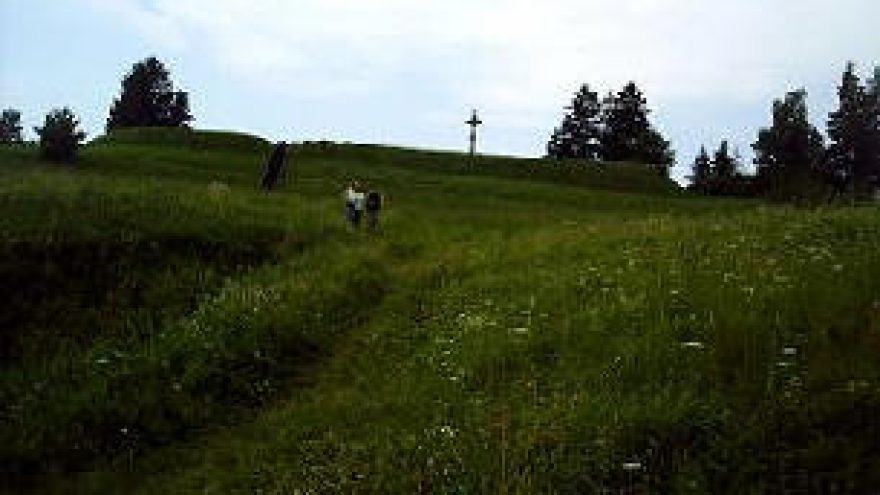 Apie 1 km nuo Pakalnių į šiaurę, palei Pakalnių – Leliūnų kelią. Pasak padavimo, kalną supylė žmonės, nešdami žemes kepurėmis bei sterblėmis, o vieta, iš kurios jie žemes ėmę, virtusi Vidinksto ežeru. Nuo šio piliakalnio be žiūronų lengvai matosi 8 bažnyčios: Leliūnų, Skiemonių, Alantos, Molėtų, Suginčių, Skudutiškio, Kuktiškių ir pačių Pakalnių.