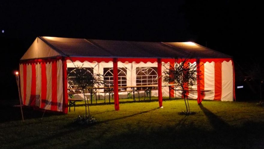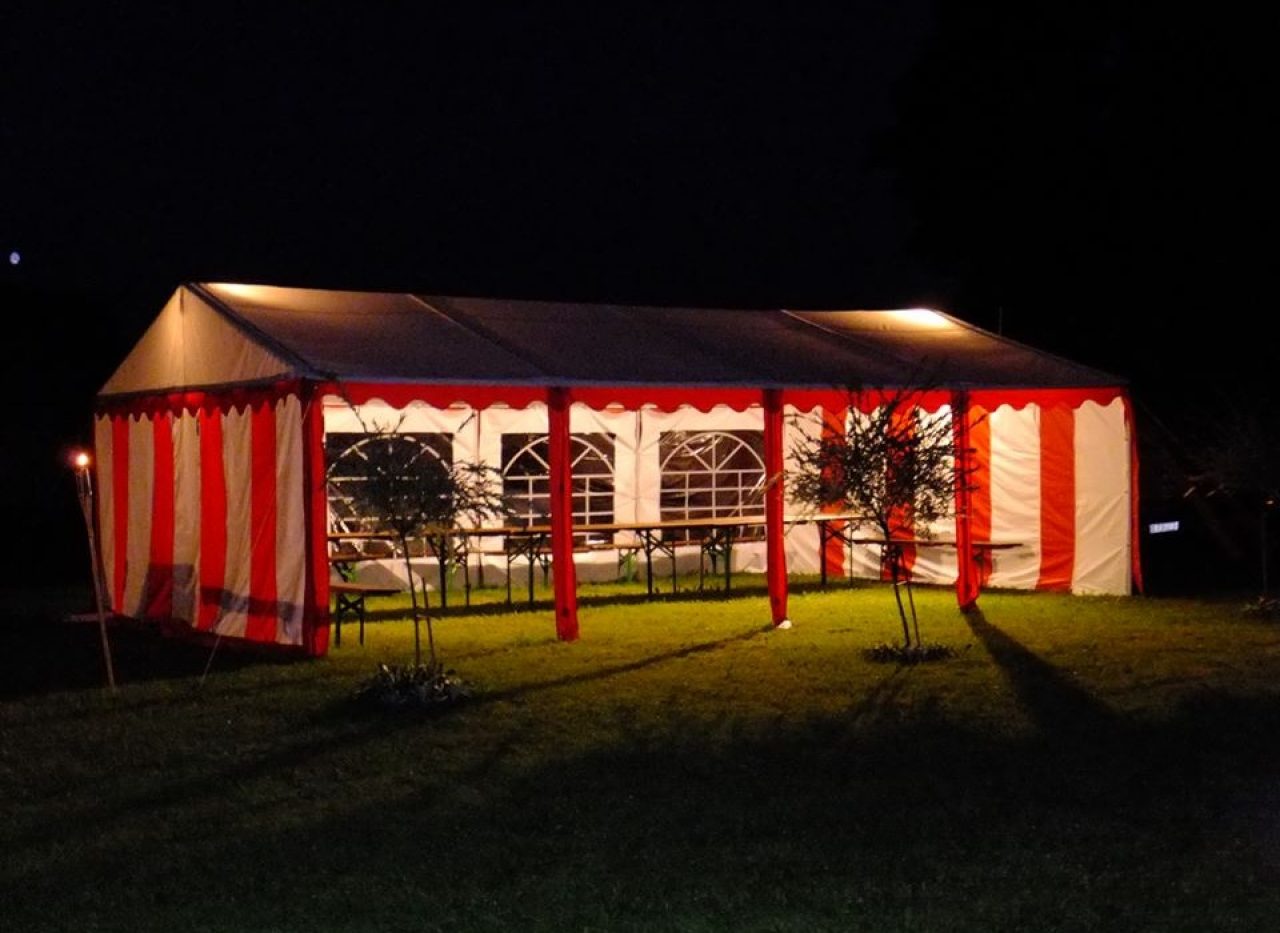 PALAPINIŲ POBŪVIAMS (5×8 m, 5×10 m) SU APŠVIETIMU, SULANKSTOMAIS STALAIS, SUOLAIS NUOMA. Tel.: 868989829