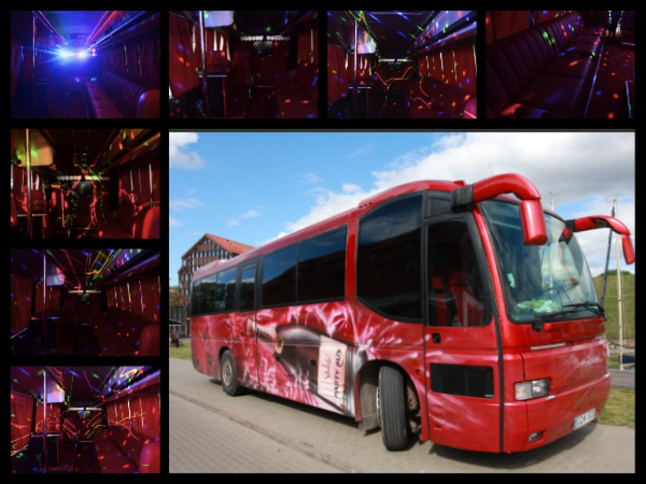 Party bus tai limuzino klasės autobusas. Jame telpa iki 30 žmonių. Yra įrengta šokių aikštelė, foteliai, staliukai, gera garso aparatūra, led apšvietimas – viskas, ko reikia geram vakarėliui!