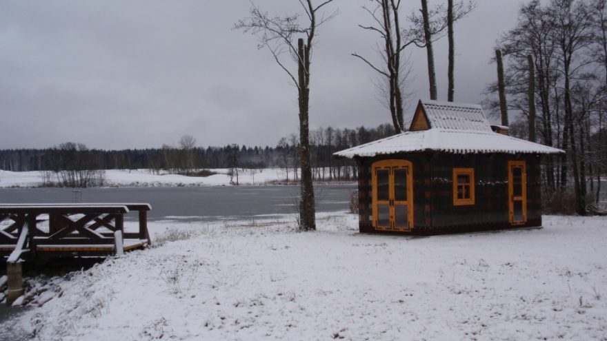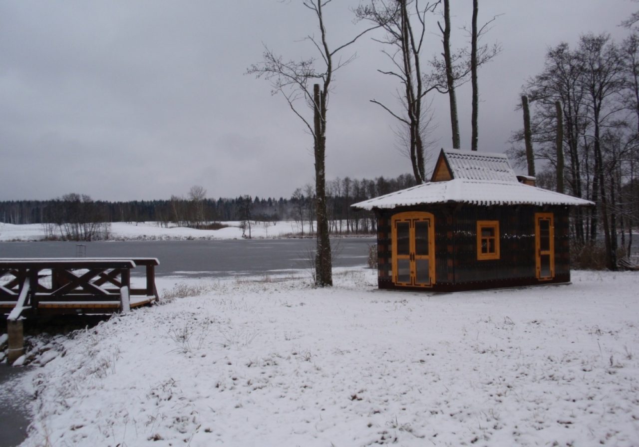 Nuomojama naujai įrengta pirtis apsupta ežero ir tvenkinio. Pirtyje yra karštas vanduo, dušas, WC, TV, garso aparatūra. Yra šaldytuvas, mikrobangų krosnelė, židinys kepsniams ant grotelių. Šalia – dengta lauko pavėsinė su židiniu. Priešais golfo laukai ir Europos centras. Labai jauki vieta vakarėliams, šeimų poilsiui. Galima atsivežti gyvūnus. Esant palankiam orui yra galimybė pajodinėti žirgais, pasiirstyti valtimis.