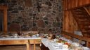 Viduje maudymosi zona atskirta nuo poilsio zonos, kurioje yra židinys, stalas, suolai, minkštasuoliai, šaldytuvas bei indai, tad galima ne tik ramiai praleisti laiką pirtyje, tačiau taip pat atšvęsti įvairias šventes.