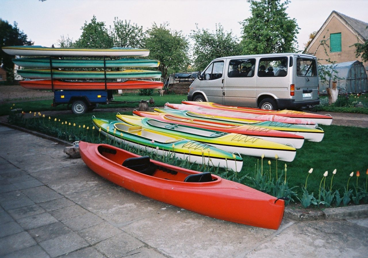 Nuomojamos dviejų rūšių baidarės: stiklo pluošto su bagažinėmis,pritaikytos ilgesnėms kelionėms, ir polietileninės – trumesnėms kelionėms. Baidarės yra pritaikytos plaukti ir šeimoms.