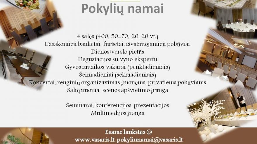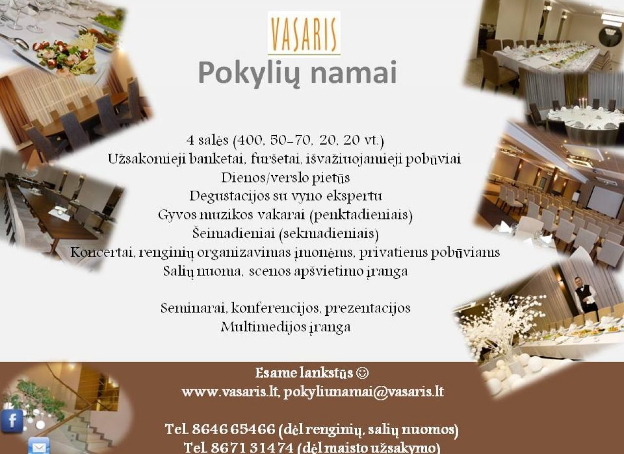 Jau 25 metus einame maitinimo paslaugų ir renginių organizavimo keliu. Ruošiame vaišes vestuvėms, jubiliejams, gimtadieniams, furšetams, krikštynoms, konferencijoms, kitoms profesinėms, kalendorinėms šventėms, įmonės vakarėliams… Mūsų gaminiuose nerasite jokių priedų – mes naudojame tik natūralius produktus siekiant išlaikyti, sustiprinti, susilpninti tam tikras maisto produkto savybes ar pridėti papildomų. Nuolat kuriame, improvizuojame ir džiaugiamės galėdami įtikti Jums. Kviečiame paragauti, įvertinti ir pasidalinti su mumis Jūsų patirtomis emocijomis svečiuojantis pokylių namuose…