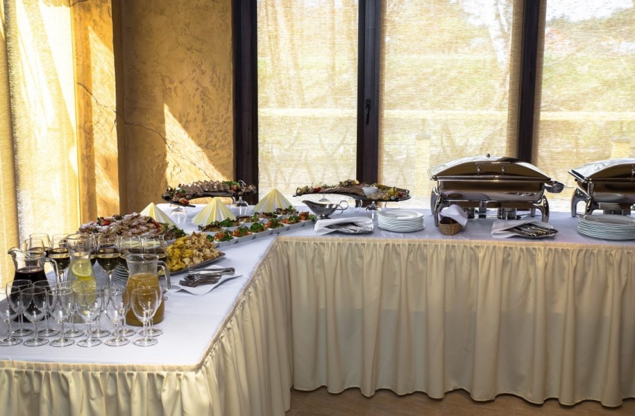 Turime dvi pobūvių sales, pasirūpiname pobūvio vaišėmis ir aplinka.