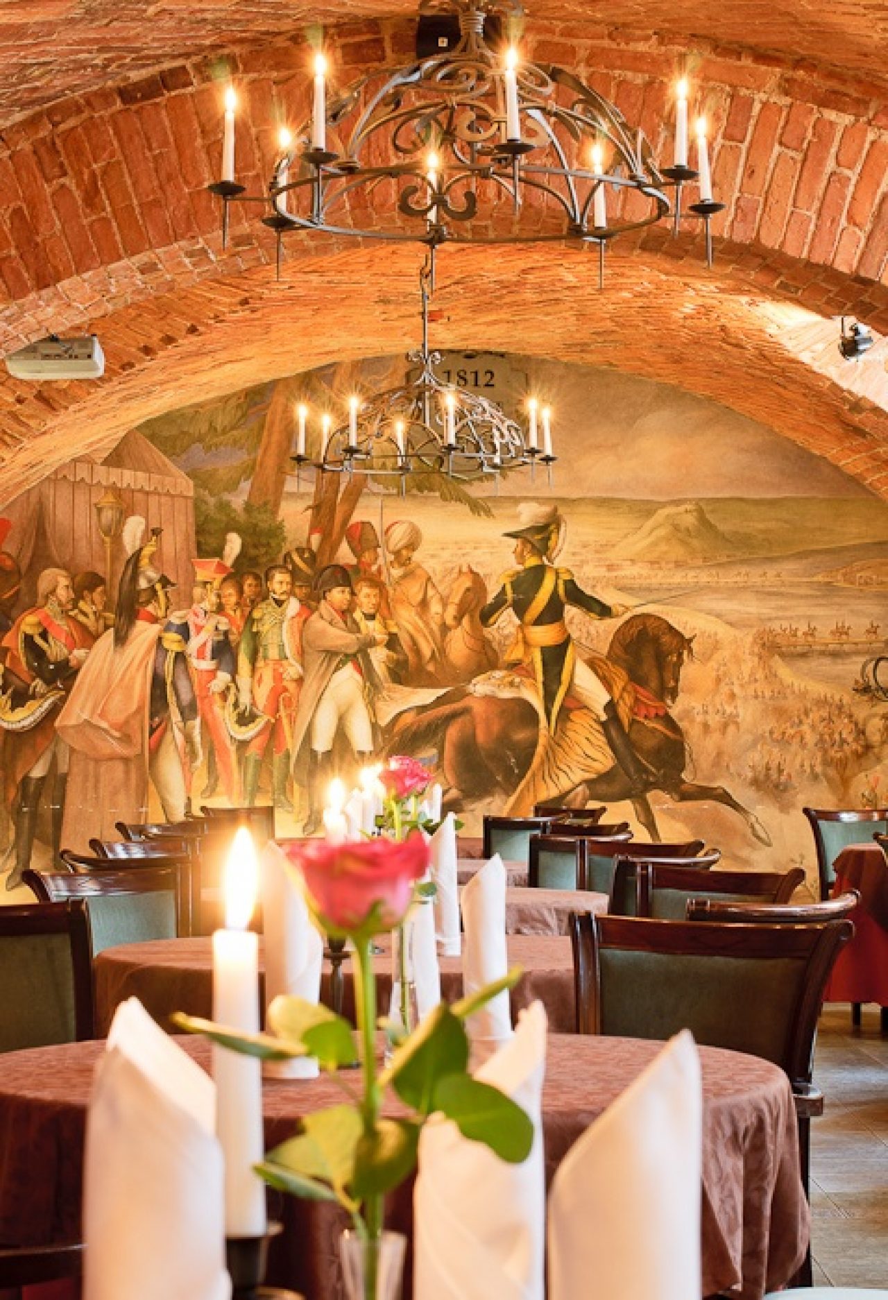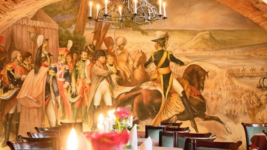 Istorijos autentika ir prabanga dvelkiantis viduramžių interjero restoranas lankytojus vilioja Napoleono, Didikų bei Šautuvų menėmis. Vienoje šių menių rasite senoviniu būdu nutapytą freską, kurioje pavaizduotas 1812 metų birželio 24 dieną įvykęs Prancūzijos Vidurio Armijos kėlimąsis per Nemuną pagal De C. Montte litografiją.