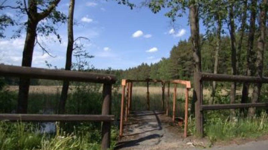 Labiausiai klaidina ši sankryža, bent jau intuityviai sunku buvo apsispręsti kur keliauti. Į dešine pasukus važiuoji link kelio prie žaliųjų ežerų, su kuriuo išsiskyrėme prie Sauso ežero. O tiesiai per tiltuką veda mums reikalingas dviračių takas. Šiek tiek už tiltuko po medžiais pasitinka informacinis stendas ir ten galima susiprasti kur esate ir kiek dar liko nuvažiuoti. Tiesa, čia jau esame netoli Balsio ežero. Na to žymaus žaliųjų ežerų ežero, kur vasarą pasilikę miestelėnai traukia gaivintis ir džiaugtis vasara.