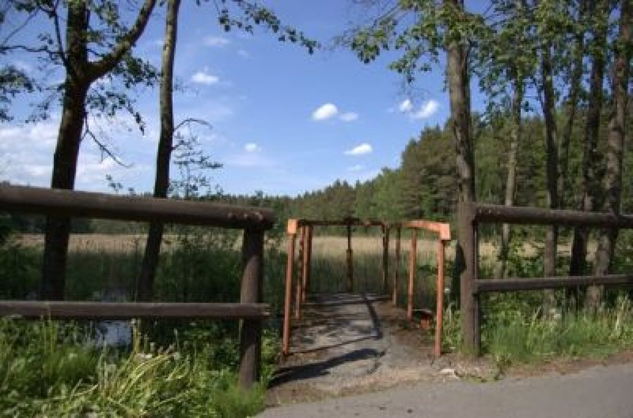 Labiausiai klaidina ši sankryža, bent jau intuityviai sunku buvo apsispręsti kur keliauti. Į dešine pasukus važiuoji link kelio prie žaliųjų ežerų, su kuriuo išsiskyrėme prie Sauso ežero. O tiesiai per tiltuką veda mums reikalingas dviračių takas. Šiek tiek už tiltuko po medžiais pasitinka informacinis stendas ir ten galima susiprasti kur esate ir kiek dar liko nuvažiuoti. Tiesa, čia jau esame netoli Balsio ežero. Na to žymaus žaliųjų ežerų ežero, kur vasarą pasilikę miestelėnai traukia gaivintis ir džiaugtis vasara.