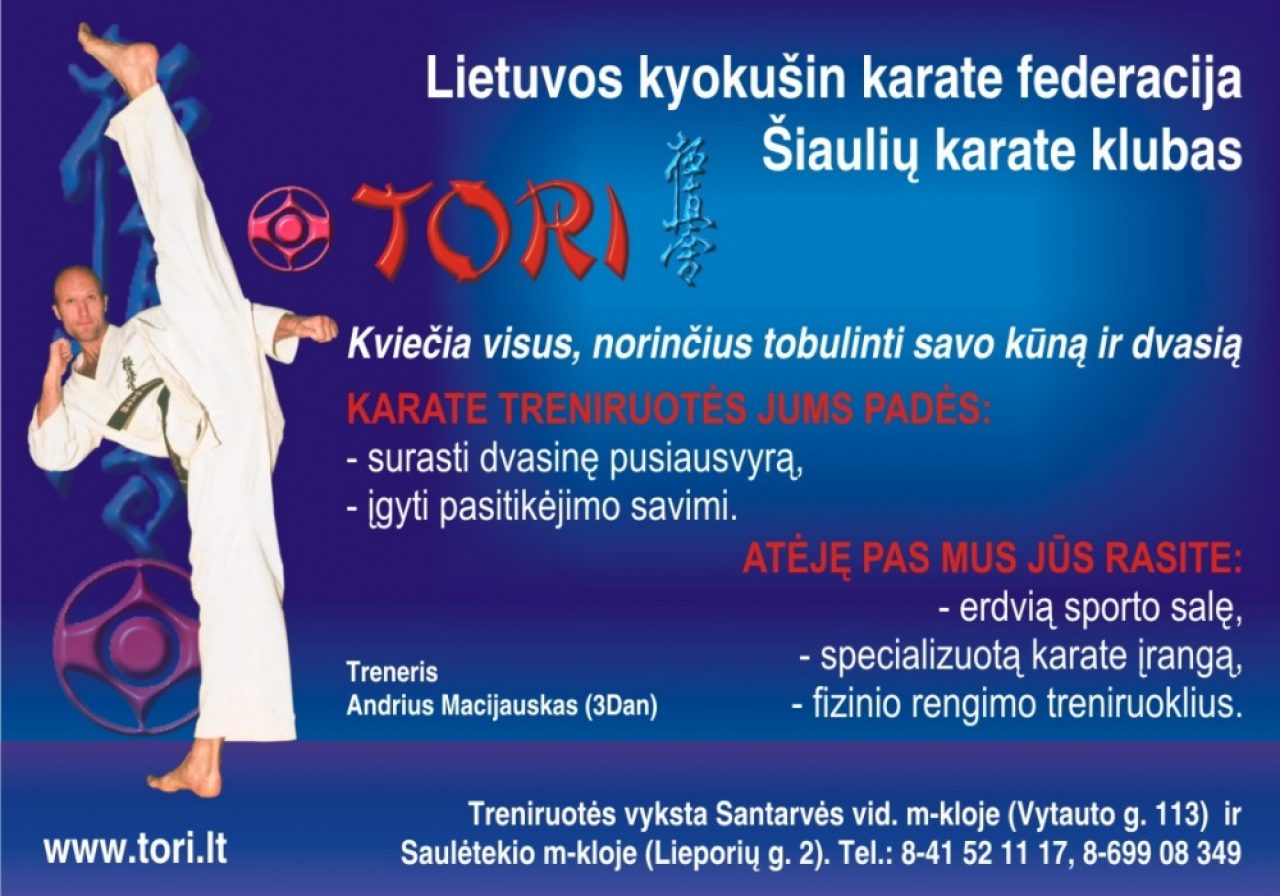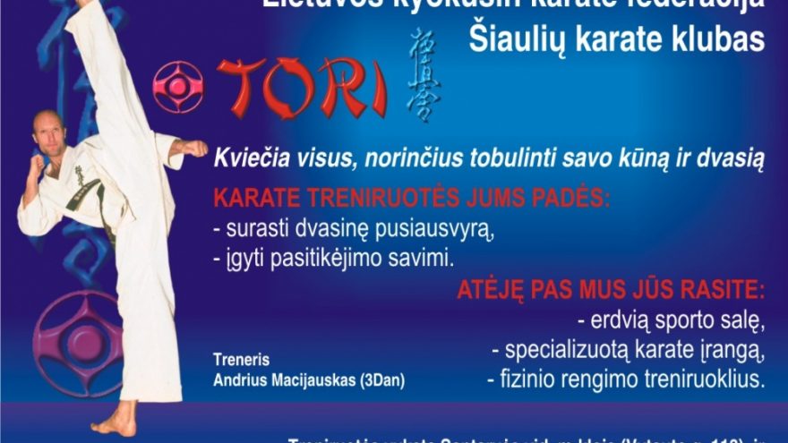 Karate treniruotės grupėse pagal pasiruošimo lygį ir amžių. Užsiėmimų metu lavinama tokios fizinės savybės kaip: jėga, ištvermė, greitis, koordinacija, lankstumas. Į techninio ruošimo programą įtraukta: baziniai karate veiksmai, kiokušin karate kovinė technika, savigynos pagrindai. Sporto klube t.p. vyksta Tae-bo užsiėmimai (aerobinės treniruotės pagal muziką naudojant karate smūgius). Sporto bazė: erdvi 500 kv.m sporto salė, specializuota karate įranga, treniruokliai.