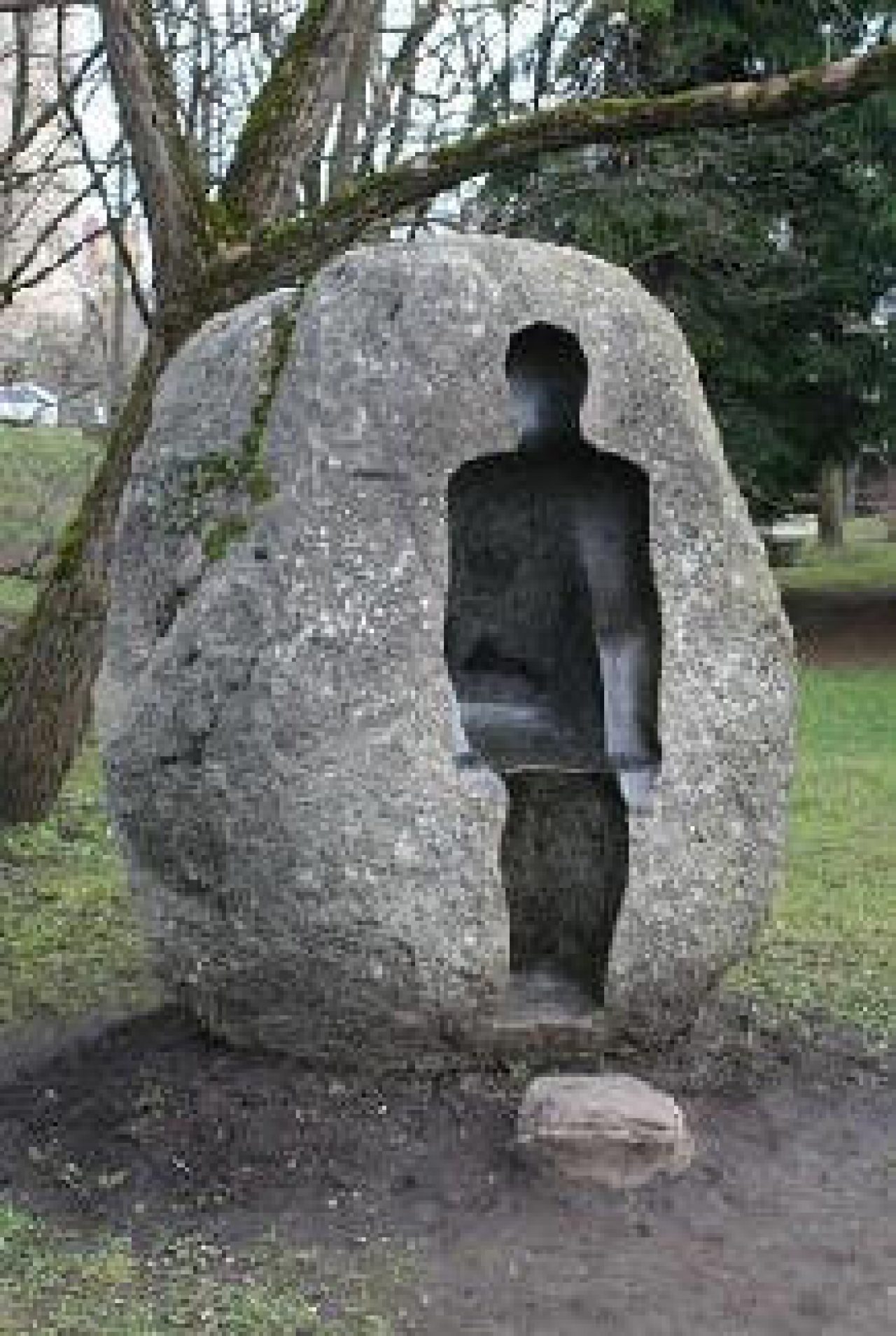 Už naujojo pašto, važiuojant ar einant per tiltą, skverelyje prie upės stovi Arvydo Ališankos skulptūra „Belaukiant kelionės“.