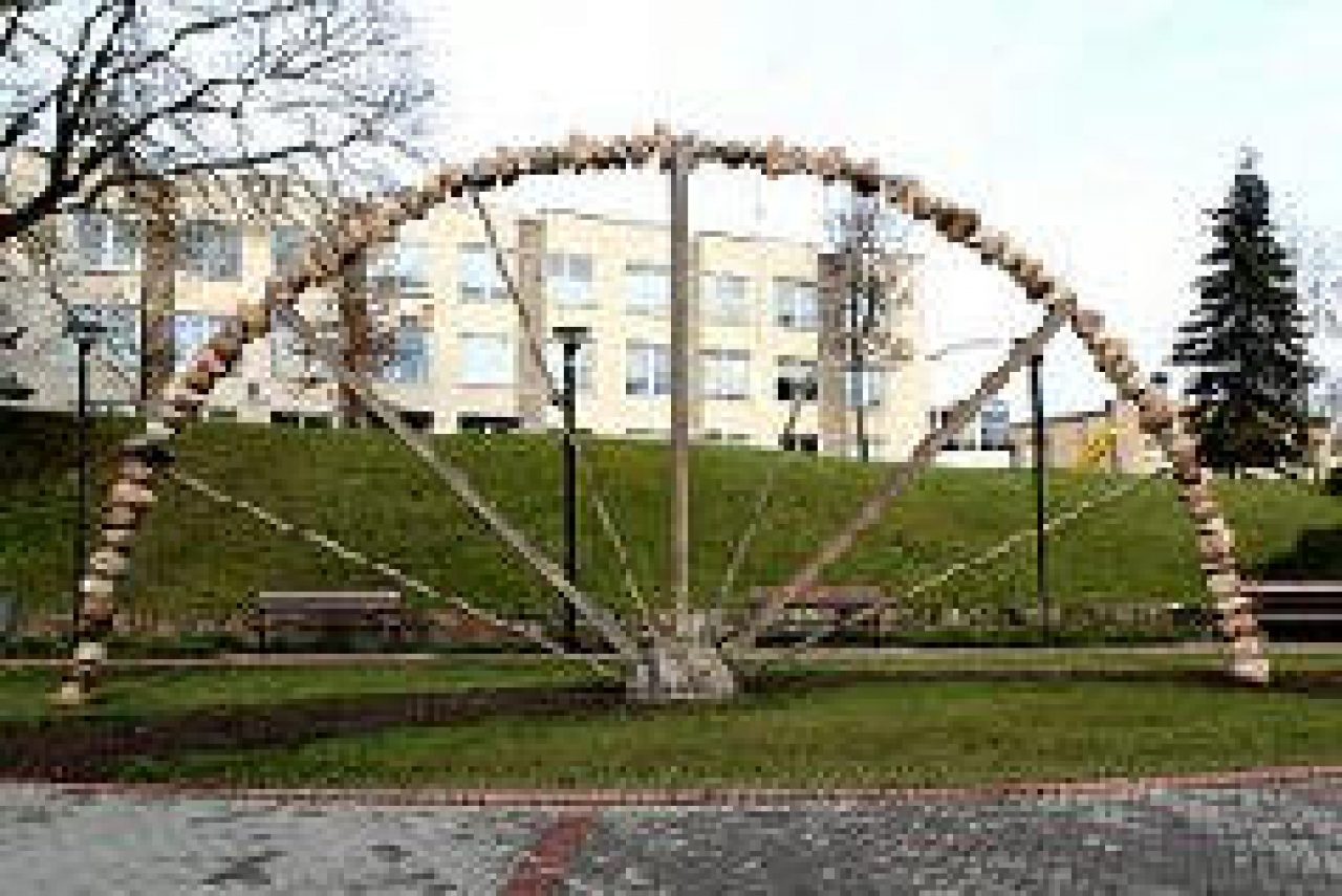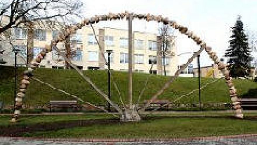 Utenos regiono bendruomenės fondas 2003 metais už 60 tūkst. litų įrengė ir miestui padovanojo skverelį, o 2004 metais skyrė 15 tūkst. litų skulptūriniam akcentui. Juo tapo vilniškio skulptoriaus Vlado Urbonavičiaus avangardo stiliaus “Vaivorykštė“, suverta iš daugiau nei 100 akmenų, sverianti per 3 tonas, 4 metrų aukštyje prilaikoma 4,5 tonos metalo stipinų.