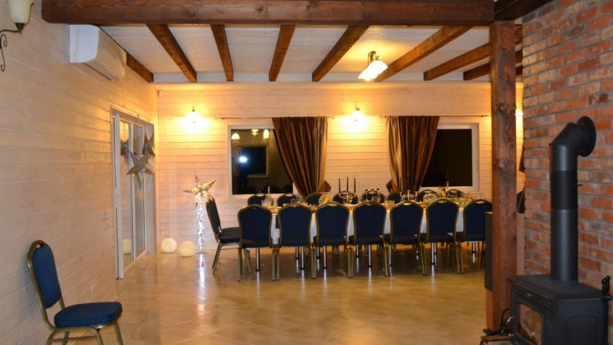 – Pobūvių salė (40 žmonių) su puikiu vaizdu į tvenkinį.