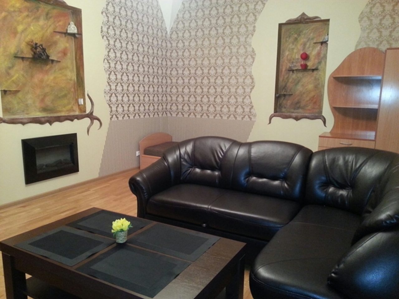 Nuomuojamas dviejų kambarių 55kv/m erdvus, jaukus, aukštomis lubomis butas trečiame aukšte. Atskiras miegamasis su dvigule lova. Antrame kambaryje dvi viengulės lovos, minkštas išlankstomas odinis kampas (poilsio zona). Viso gali gyventi keturi žmonės plius išlankstomas mikštas kampas. Yra rašomasis stalas, elektrinis židinys. Namų aplinka, balta patalynė, ranšluosčiai, vonios kambarys (vonia, dušas), lyginimo lenta, lygintuvas, rūbų džiovyklė, skalbimo mašina, plaukų džiovintuvas. Virtuvėlė (mikro bangų krosnelė, elektrinė viryklė, šaldytuvas, virdulys, indai). Kabelinė tv, nemokamas bevielis internetas. Apsaugos sistema.