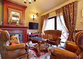 Viduje restorano jauku, ramu, garsus interjero autorius, menininkas S. Maslovas, dirbantis įvairiose pasaulio šalyse, aplinką kūrė pagal savo vidinį pasaulį: žydi gėlės, ant langų kabo džiovintų daržovių ryšuliai, sklando kaimiška dvasia, o lankytojai gali pasigrožėti įspūdingu restorano židiniu, kuris nelieka nepastebėtas.