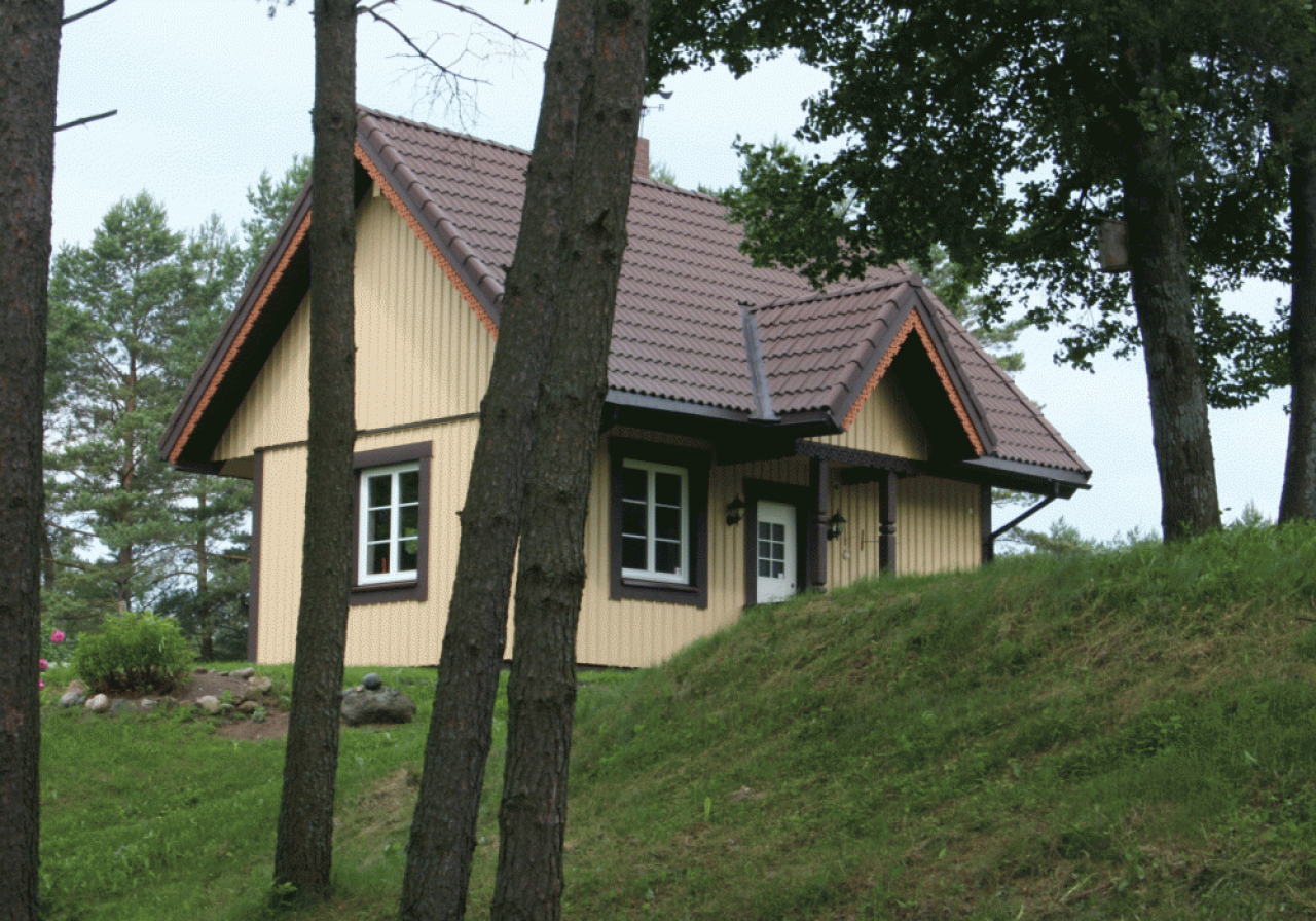 Pirmame aukšte- vienas bendras kambarys kartu su virtuve,šiltas ir šaltas vanduo,šaldytuvas ,el virykle.Visi virtuvės indai ir reikmenys.Namelis šildomas krosnele, malkomis .