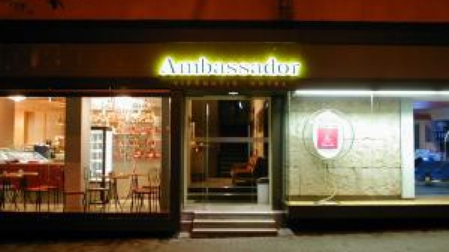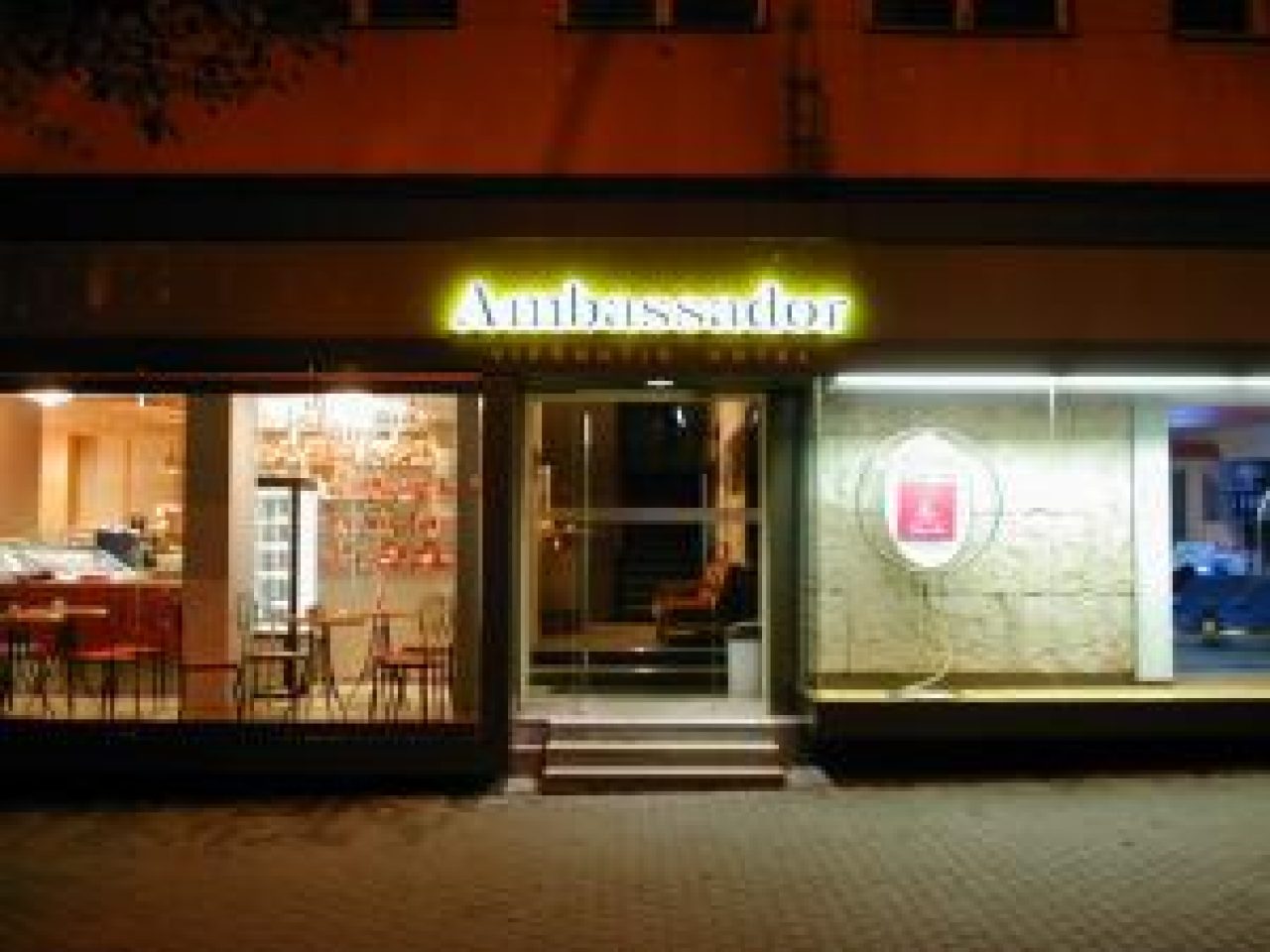 Viešbutis “Ambassador” yra pačiame Vilniaus miesto centre, Gedimino prospekte. Šalia – Arhikatedra, Dramos teatras, Vyriausybės rūmai, Biznio ir Prekybos centrai. Tai puiki vieta tiek verslininkams, tiek turistams. “Ambassador” viešbutyje yra trijų kategorijų numeriai, iš kurių 2 liuksai, 12 dviviečių ir 6 vienviečiai kambariai. Kiekviename numeryje yra visa ko reikia keliaujančiam žmogui: vonios / dušo kambarys, satelitinė televizija, telefonas. Viešbučio svečių patogumui yra jauki kavinė, interneto kavinė, nemokama automobilių stovėjimo aikštelė, seifai. Teikiamos skalbimo ir cheminio valymo paslaugos. Kambariuose yra vonia arba dušas, kabelinė TV, telefonai.