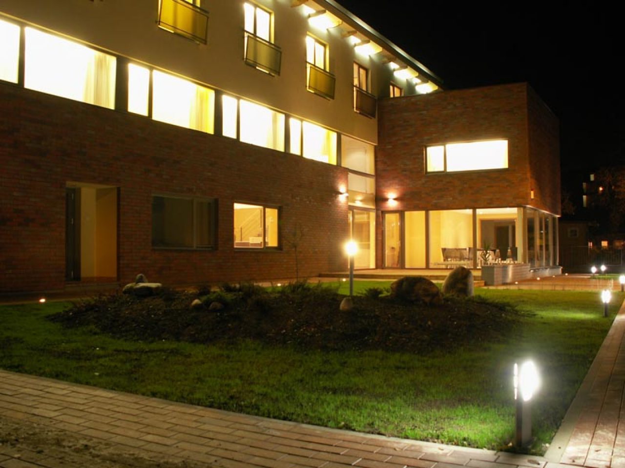 Naujas, modernus, jaukus pastatas ant Ratnyčėlės upelio kranto. Vila yra netoli miesto centro, ramioje vietoje, šalia didelio parko. Netoli SPA Vilnius. Viloje yra 15 kambarių: 14 dviviečių ir 1 apartamentai. Vienu metu galime apgyvendinti 32 svečius. Šeimoms su vaikais galime pasiūlyti pristatomas lovytes.