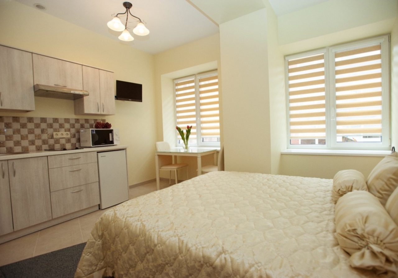 Apartamentų pastatas naujai atstatytas 2015 m., jame įrengti modernūs kambariai  turi visą reikalingą įrangą patogiam gyvenimui. Tiek baldai, tiek kiti buitiniai daiktai yra nauji, šiuolaikiški ir komfortiški. Vienu metu apartamentuose gali apsistoti iki 25 žmonių, priimamos grupės.