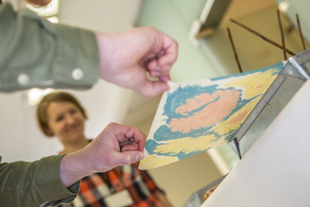 Užsiėmimo metu Jūsų laukia iki pusės valandos tapybos ant vandens (ebru) technikos pristatymas, apie valanda tapymo ir pasibuvimo drauge. Trukmė apie 1,30 – 2 val. Dalyvaujant 10 žmonių, mūsų studijoje kaina – 85 eur. Galimi įvairūs užsiėmimų formatai, kaip: pažintiniai-edukaciniai, relaksaciniai tapant ant apvalių indų, tapant drauge su kolektyvu bendrą piešinį ant įvairių dydžių didelio formato indų ir kt.