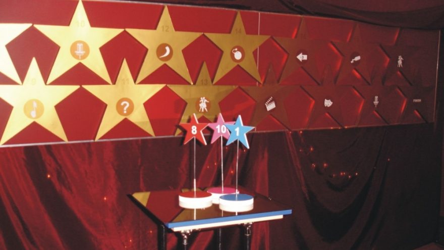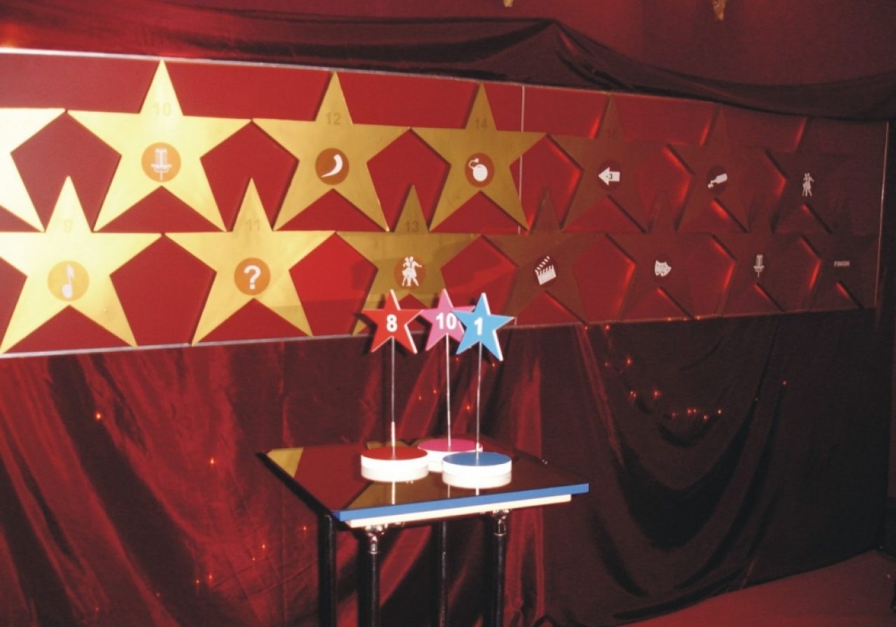 “Kiekvienas iš mūsų yra žvaigždė, tik ne kiekvienas tai žino…” Pristatome originalų žaidimą, skirtą įvairių kolektyvų (įmonių ar privačių) renginiams. Šis žaidimas vienu metu tenkina kelis renginiui keliamus reikalavimus: • Tvyro azartiška ir smagi nuotaika • Dalyviai nuolatos įtraukti į veiksmą ir tampa jo dalimi • Išlaikoma intriga iki pat pabaigos “Šlovės alėja” – didžiulis kelių metrų ilgio žaidimas-stendas, simbolizuojantis improvizuotą šlovės alėją (Walk of fame). Žaidimo esmė labai paprasta. Dalyviai suskirstomi komandomis po 4-10 žmonių (idealu, jei tai yra atskiri stalai) ir kiekviena komanda gauna “žvaigždutę” su numeriu. Eilės tvarka komandos meta didelį kauliuką ir su savo “žvaigždute” juda šlovės alėjoje per tiek skaičių, kiek išmetė. Ant kiekvienos alėjos žvaigždės yra užduotis, kurią reikia atlikti. Neatlikę užduoties (arba ją atlikę netinkamai – sprendžia visi dalyviai), grįžta į vietą, kurioje buvo prieš tai. Laimi komandos, pirmosios praėjusios visus išbandymus ir pasiekusios finišą. Užduočių pavyzdžiai: improvizuotai pašokti, padainuoti, atspėti muzikinę ar kino mįslę, įgarsinti siužetą ir pan. Užduotis atlieka visa komanda kartu, įtraukdama ir kitus renginio dalyvius. Žaidimo metu padaroma pertrauka, kurios metu gali pasirodyti koks nors atlikėjas. Žaidimo pabaigoje laukia iškilminga apdovanojimų ceremonija. Ištiesiamas raudonas kilimas, žaidimo nugalėtojams bei artistiškiausiems, išradingiausiems dalyviams įteikiami pizai, kurie gali būti įvairūs, priklausomai nuo užsakovo pageidavimų. Žaidimas viso užtrunka 2-4 val. ir žaisti jį gali nuo 20 iki 100 žmonių.